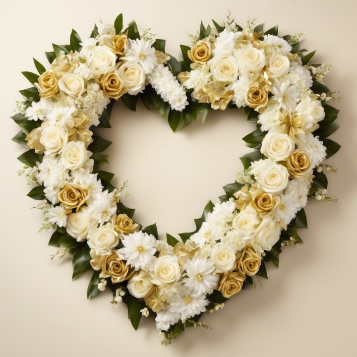 Szív alakú élő koszorú – Az elhunyt iránti szeretet kifejezése.